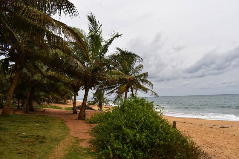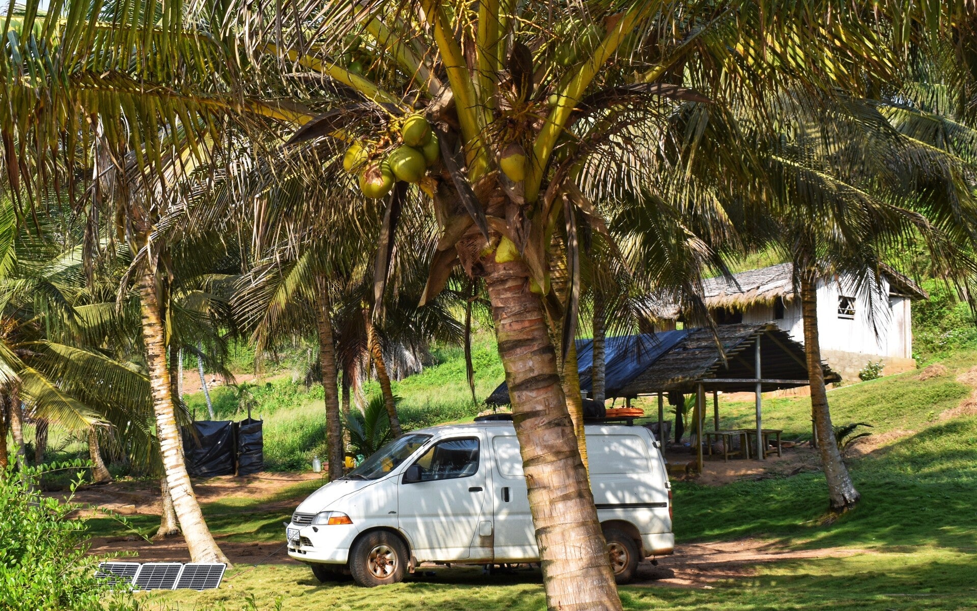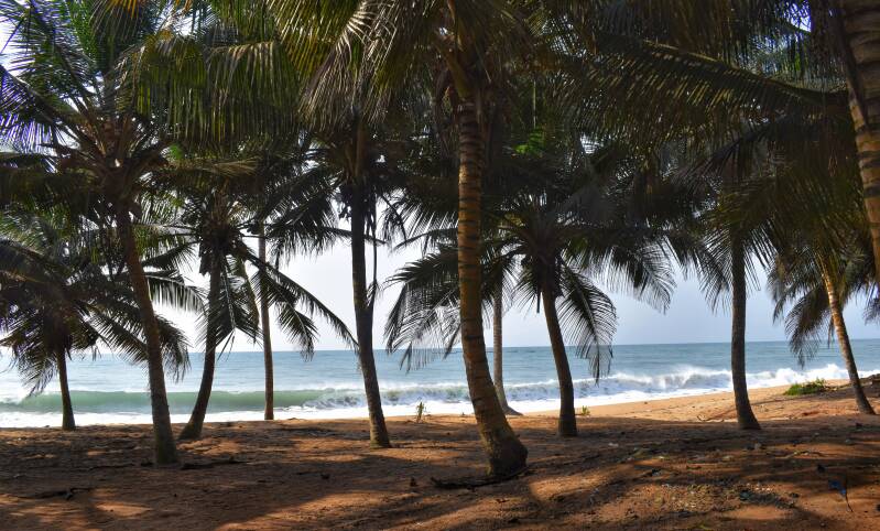In der Nähe von Sassandra liegt das Nanunu Eco Surf Camp. Ziemlich einfach, Plumpsklo und Eimerdusche. Toma ist ein netter Gastgeber und ich stehe wieder mal alleine an einem Traumstrand.