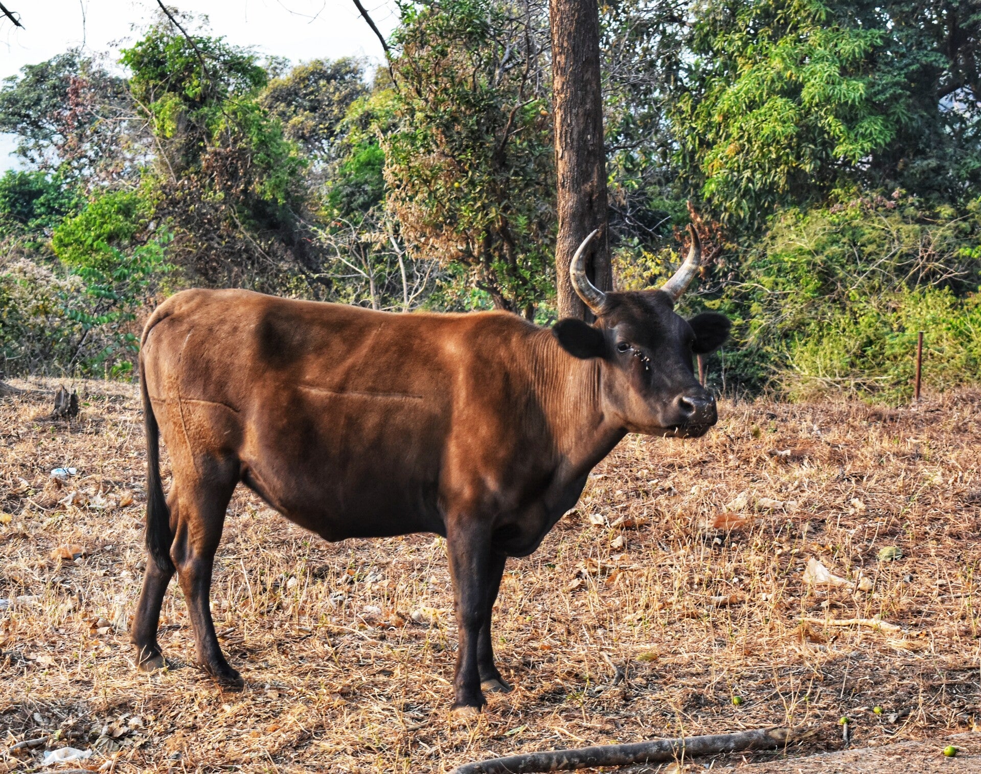 Da hier eine Menge Ziegen rumlaufen (unglaublich wie neugierig die sind, egal wie sehr Mitzi tobt, die kommen immer näher) ist Mitzi an der Leine. Dann steht sie da, und mein Tier will wieder mal mit einem viel zu großen Tier spielen.