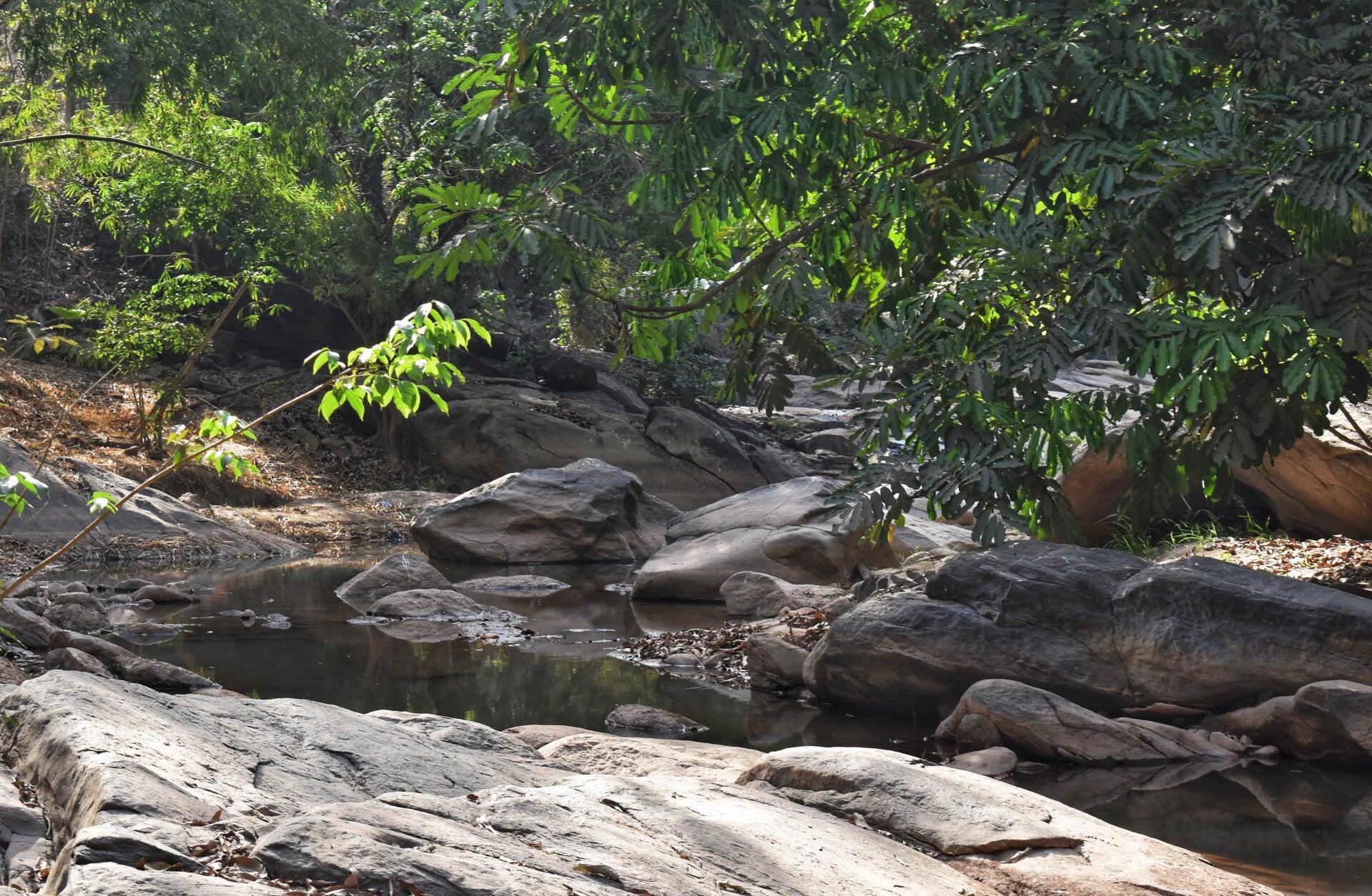 Gleich vom Parkplatz geht ein Weg ab der zu einem Bach führt. Da es angenehmen Schatten gibt wird es eine längere Gassirunde und das Tier darf planschen.