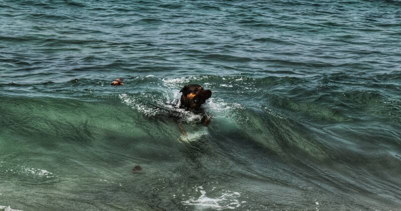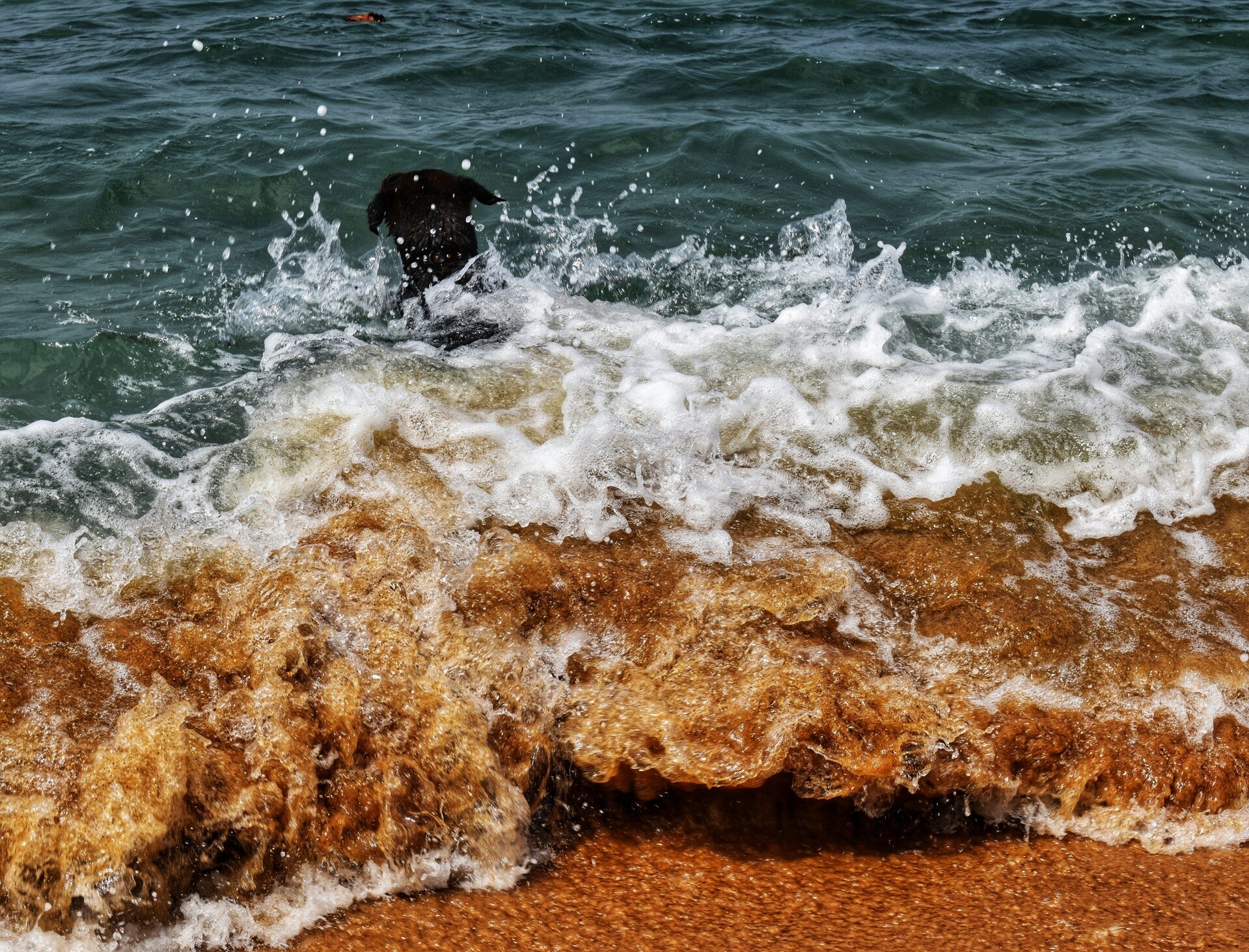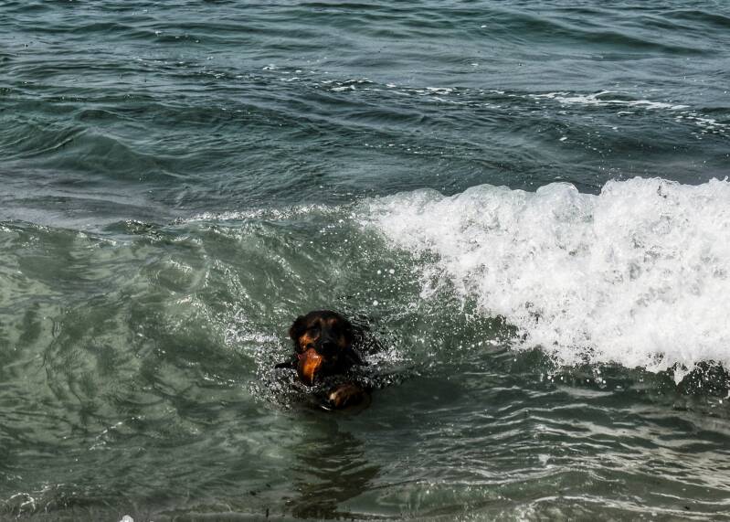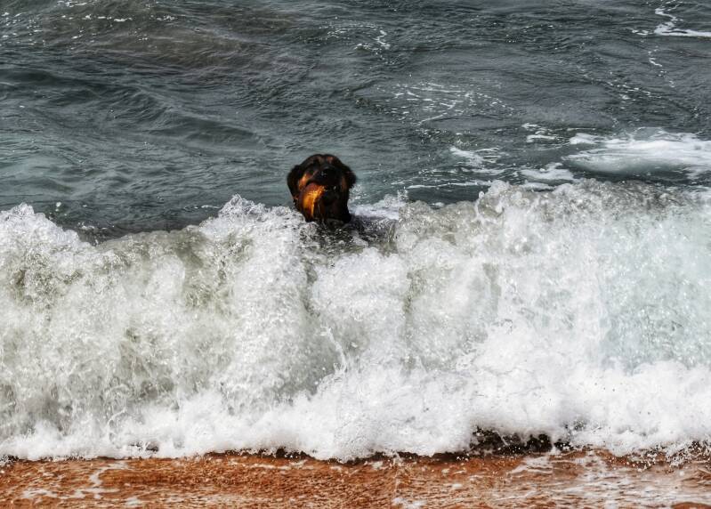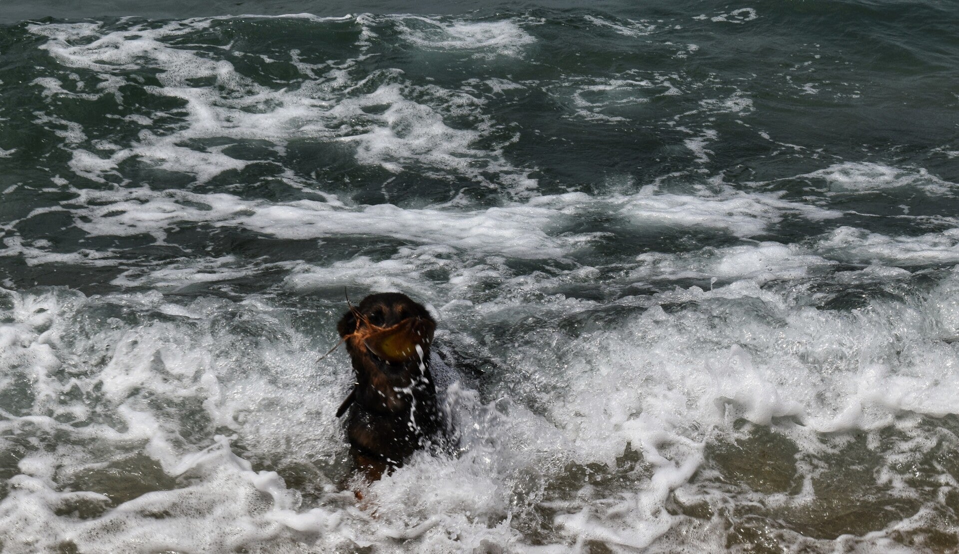 Mit dem 4Pd (4Paw drive) schafft sie's auch immer auf der Welle zu bleiben, ein Surfdog halt:).
