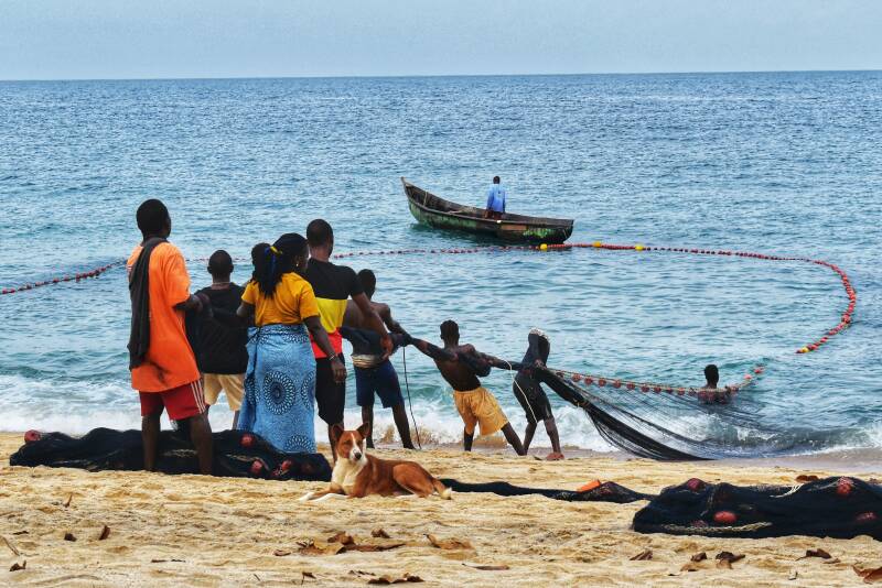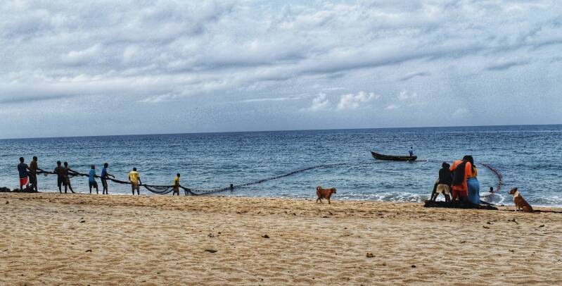 Beim Kaffee beobachte ich die Fischer die täglich zur gleichen Zeit am Werk sind.