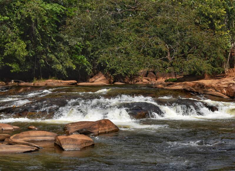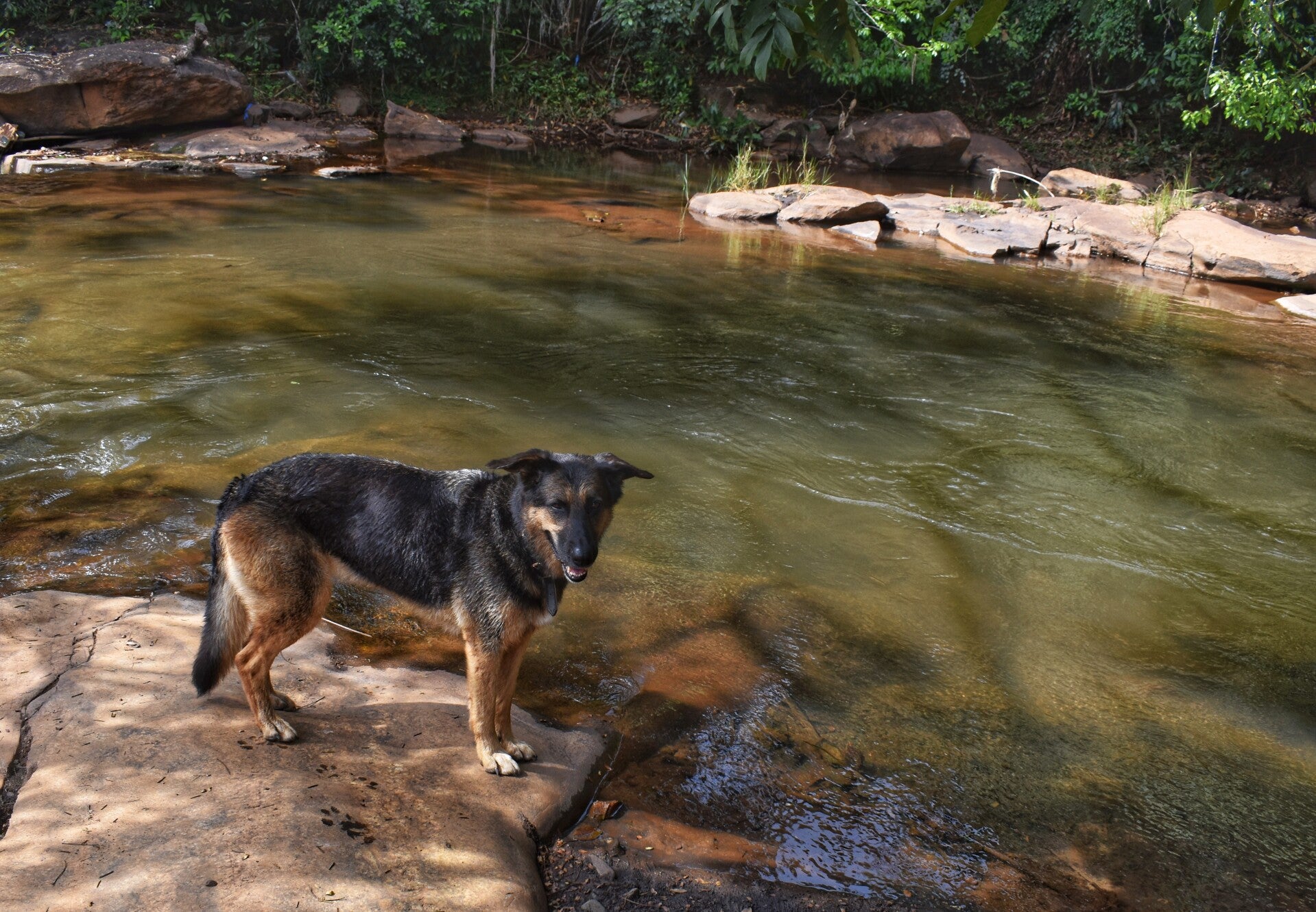 Der Bach fließt direkt am Platz vorbei und es gibt eine Stelle wo man reingehen kann. Dort werde ich ungeduldig erwartet.