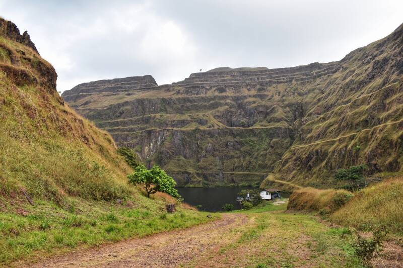Hier wurde irgendetwas abgebaut (bitte selbst recherchieren was, hab grad kein Netz) daher diese Terrassierung, lustig zu sehen wie sich die Natur zurück holt was ihr gehört.