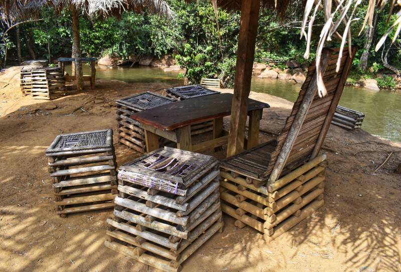 Zum relaxen im Schatten auf einer Schaukel direkt am Wasser, oder Essen unter Palmwedel.