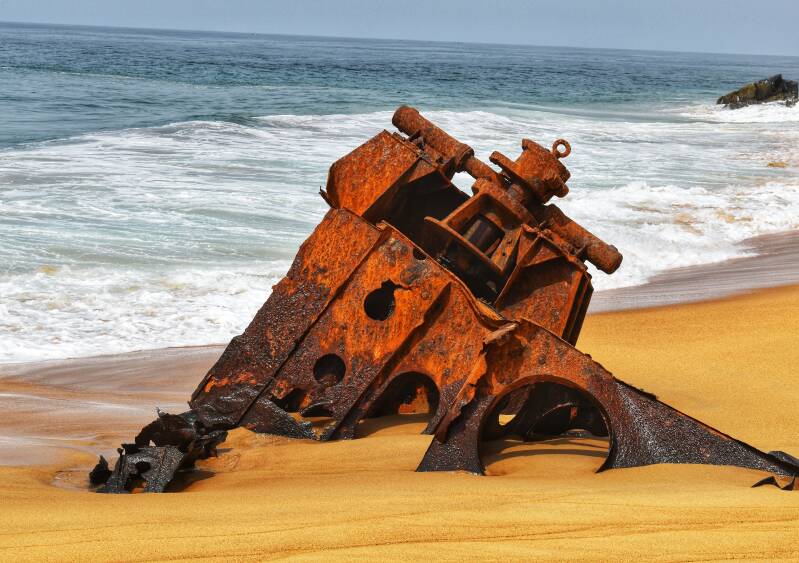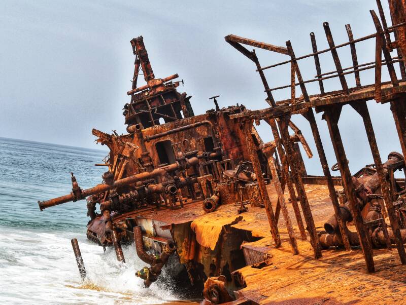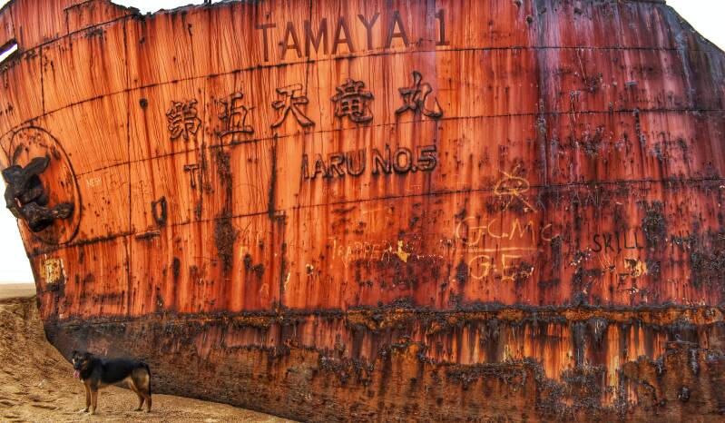 Dann endlich beim Wrack angekommen. Ist eine seltsam Geschichte. Die Tamaya 1 ist ein kleiner Tanker der Schlagzeilen machte, nachdem er Anfang Mai 2016 ohne Mannschaft an der Küste Liberias bei Robertsport strandete und daher als Geisterschiff betitelt wurde.