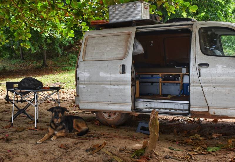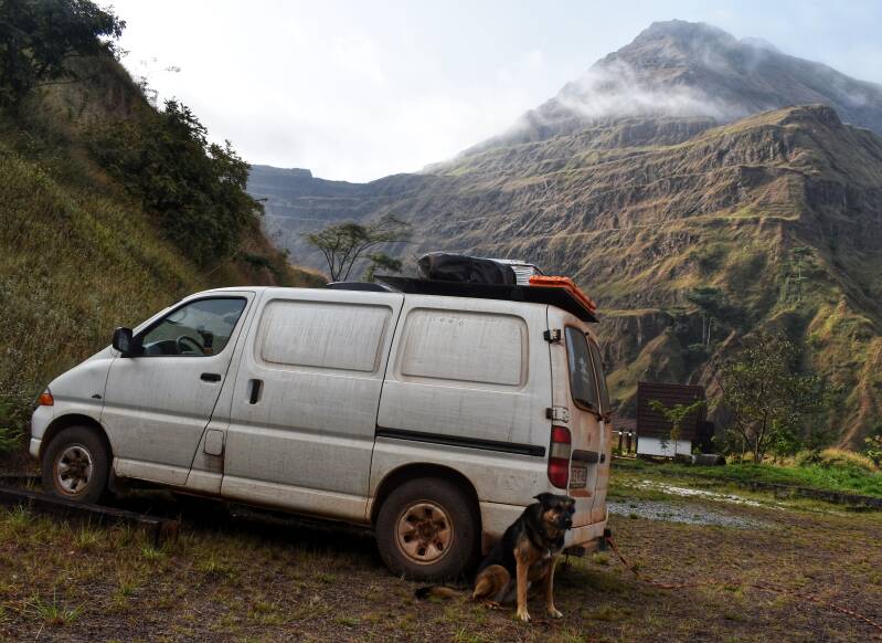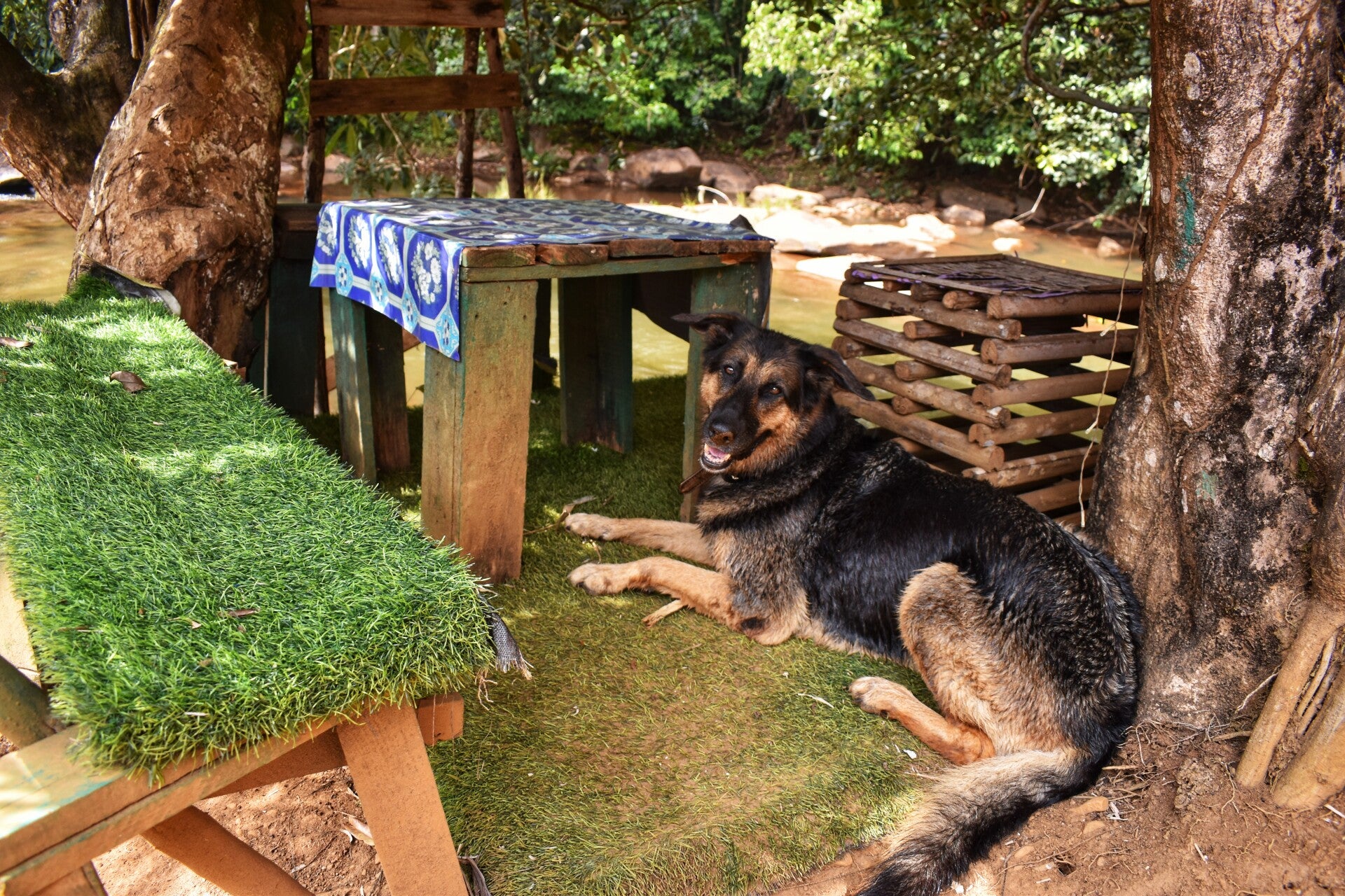 Die Begrüßung ist super herzlich, ist sowas wie ein Familienbetrieb den der Papa mit seinen beiden Söhnen führt. Nachdem ich eingeparkt habe bekomme ich einen Teller Kassava und kurz drauf eine große Flasche mit Eiswasser. Das Abendessen bestelle ich und werde ganz besorgt gefragt, was den mein Hund essen soll:).