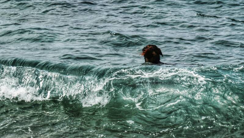 Der Weg raus ist etwas schwieriger weil's eine starke Brandung gibt.