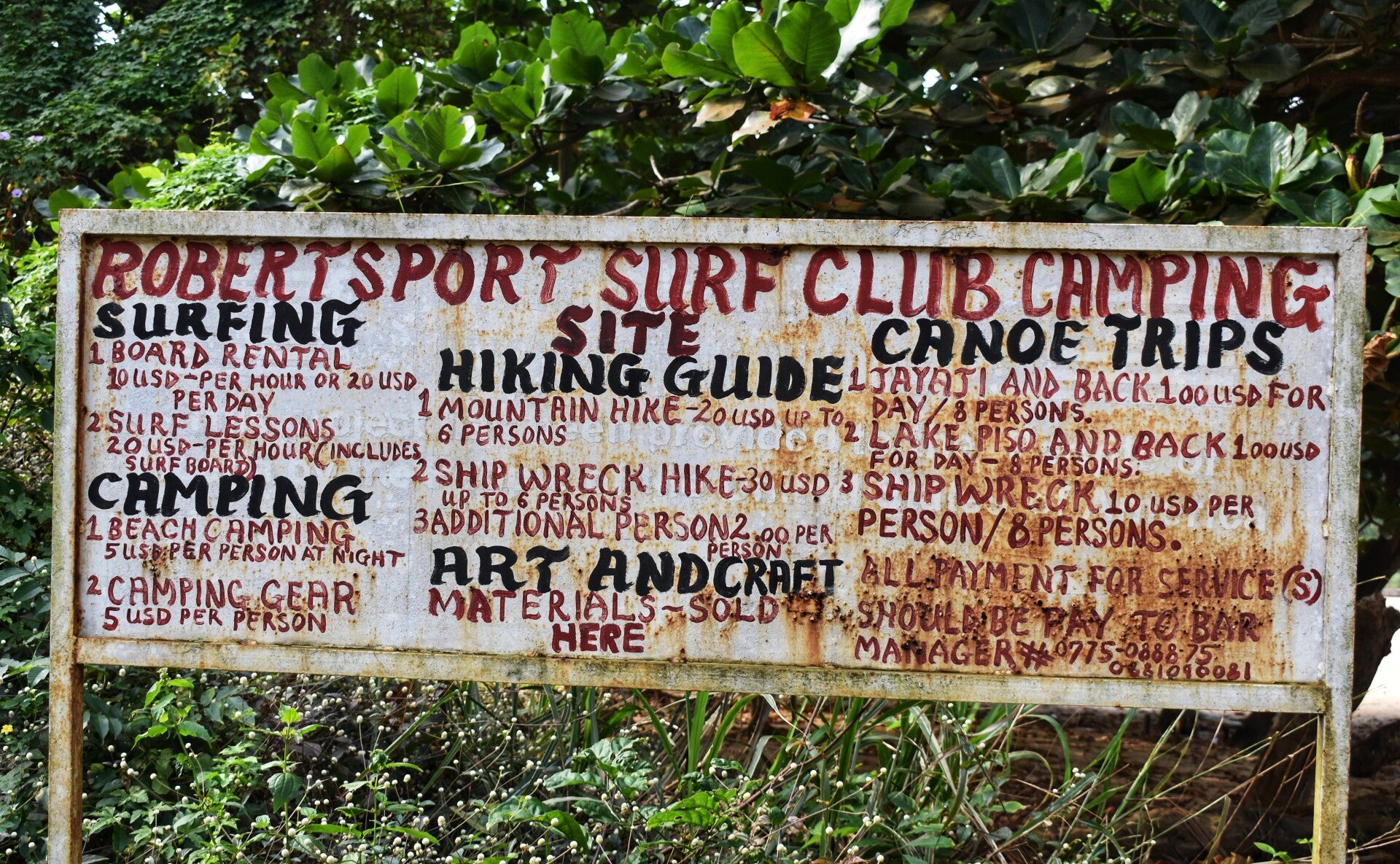 In Robertsport angekommen erwartet mich dieses Schild am Robertsport Surf Club. Verspricht viel, auch der Strand ist total sauber und wirklich schön. Trotzdem werde ich die nächsten 2 Wochen alles für mich alleine haben, kein einziger Besucher ausser mir.