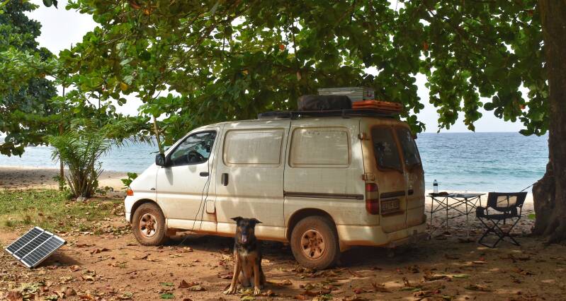 Morgen soll's nach Monrovia gehen, wieder zu dem Stellplatz bei der NGO wie bei der Hinfahrt. Hoffe sehr, das ohne Zwischenstopp zu schaffen. Das Navi sagt 6 Stunden und 290KM. Aber abgesehen von den Pisten hier raus bis zur Hauptstraße und dem Verkehr (und ganz beschissenen Straßen) in Monrovia dauert das sicher länger. Bin diese Strecke schon gefahren und da gibt es einige Polizeikontrollen, nicht mit Seil oder Nagelbrett sondern eigene Ausfahrt mit parken und in mehrere Gebäude gehen. Abgesehen von den nicht gerade sympathischen Polizisten kostet das richtig Zeit.