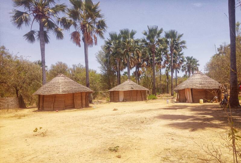 Ab Tambacounda werden die nicht so hübschen Häuser mit Wellblechdächern von strohgedeckten Hütten abgelöst. Hab mal in Kedougou ein paar Tage in so einem Lehmbau geschlafen, viel kühler und angenehmer als die Beton/Blech Häuser.