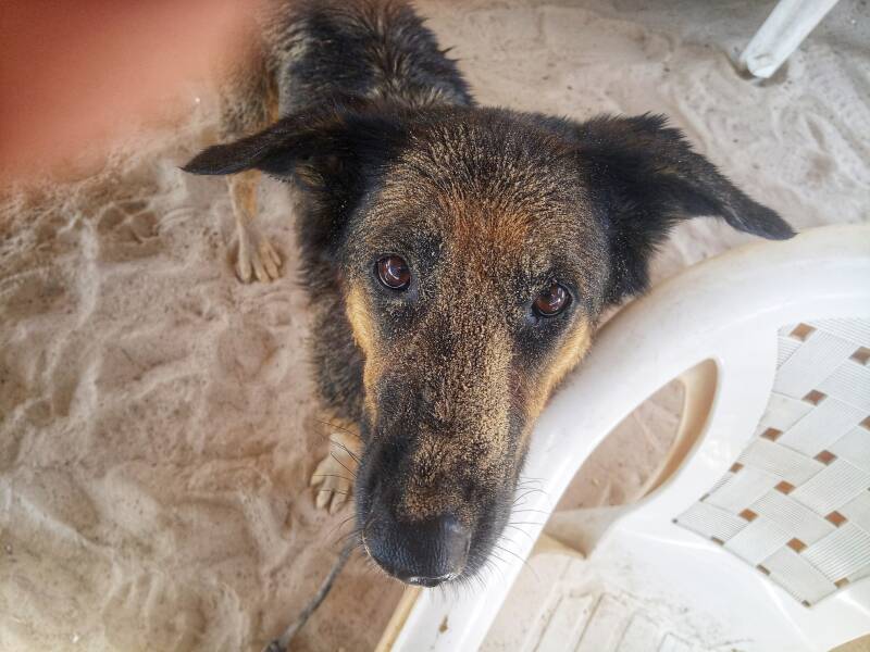 Nach ein paar Minuten dann einen fischfreien Strandabschnitt gefunden. Wenn das Tier so glücklich ist kann ich auch nicht lange böse sein.